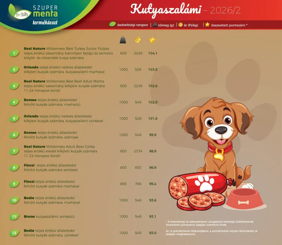 A kérdésre a Nemzeti Élelmiszerlánc-biztonsági Hivatal (Nébih) Szupermenta programja adott választ egy átfogó termékteszt keretében. A hatósági szakemberek a hazai kereskedelemben kapható kutyaszalámik közül választottak ki több terméket, amelyeknél laboratóriumi, érzékszervi és jelölési vizsgálatokat is végeztek. A vizsgálat célja az volt, hogy ellenőrizzék a teljes értékű takarmányként forgalmazott kutyaeledelek megfelelőségét.